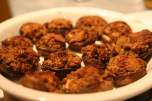 Chevre-Stuffed Crimini Mushrooms with Walnuts and Caramelized Onions